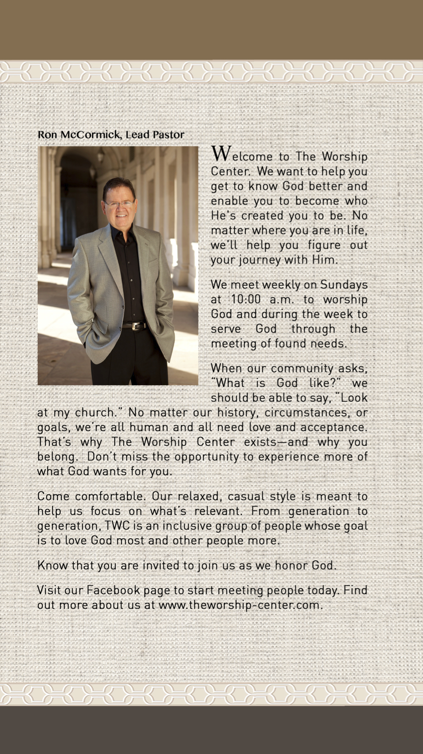 The Worship Center·14000 Crown Court, Suite 105· Woodbridge, VA 22193 · Tel: (703) 928 - 2105 · Sundays 10:00AM